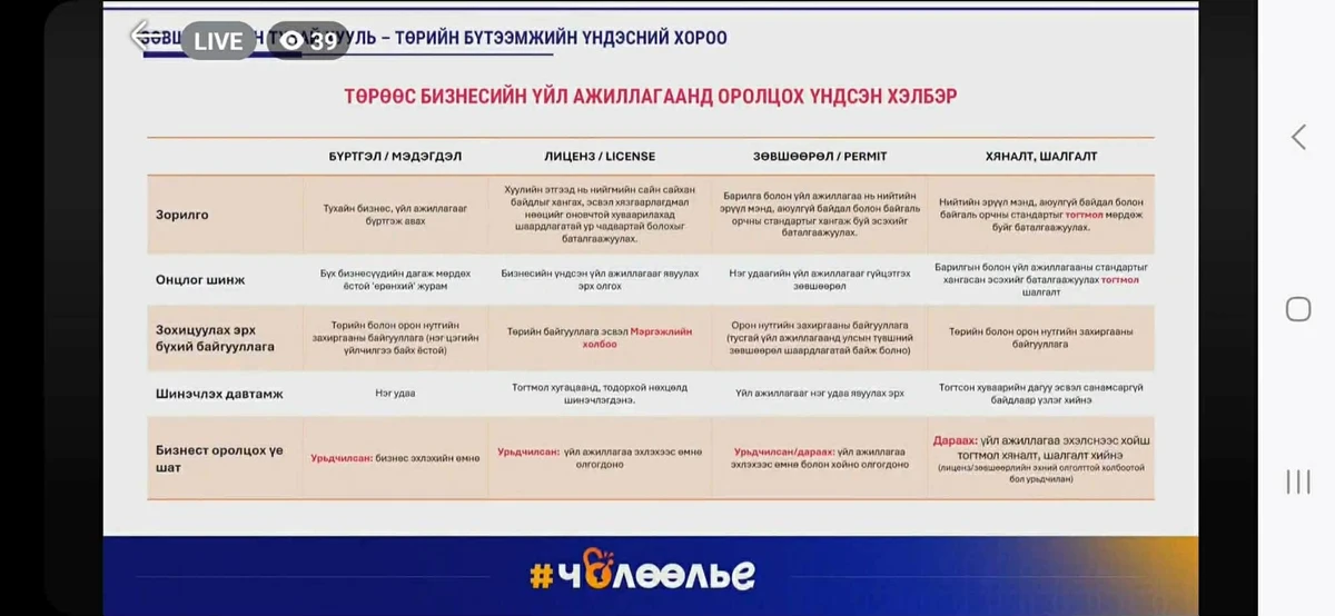 Тэгэхээр, Зөвшөөрлийн тухай хуулийн шинэчлэл нь бизнесийг зөвшөөрөл нэрээр боомилох биш “мэдэгдэл”-ээр бүртгэж, дижитал шилжилтийг ашиглан төр өөрт байгаа баримт бичгийг давхардуулан шаарддаг хүнд суртлыг арилгаж, цаг хугацааг хэмнэнэ гээд “Чөлөөлье” аяныг бүрэн илэрхийлэх хуулийн реформ болох юм. Тиймээс иргэн, аж ахуйн нэгжид шууд хамааралтай Зөвшөөрлийн тухай хуульд нэмэлт өөрчлөлт оруулах тухай хуулийн хэлэлцүүлэгт идэвхтэй оролцох нь чухал байна.