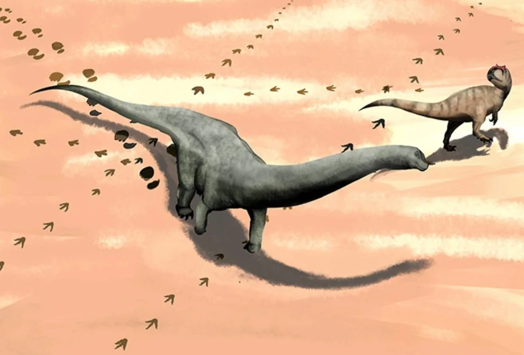 They found tracks left by sauropods, which are large herbivorous dinosaurs, with an estimated body length of 15 meters, and by meat-eaters measuring around 8 meters in length.