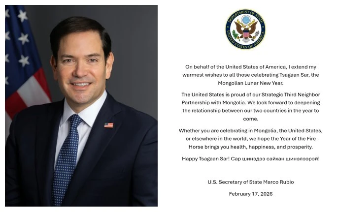 Марко Рубио Сар шинийн баярыг тохиолдуулан мэндчилгээ дэвшүүлэв