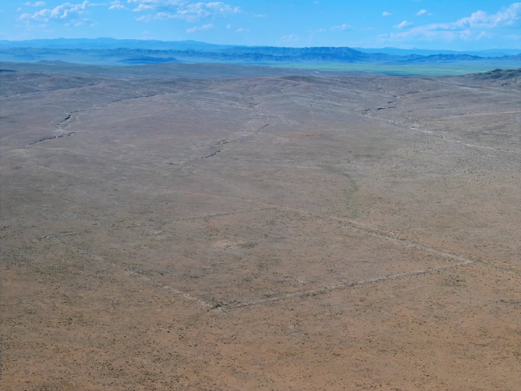乌兰和日木古城第四城,位于第一城西侧约700米处,城址平面呈方形,南北长420米,东西长380米。城墙底宽10米,残高0.4-0.8米。西城墙与南城墙的中间位置均有一宽约20米左右的缺口,应为城门遗迹。城内未发现建筑遗迹,仅发现一些夯土堆,中央土堆规模最大,呈圆形,直径50米,残高1.6 米。它的西边有3个较小的圆土堆,直径18-22米左右,两土堆相连。